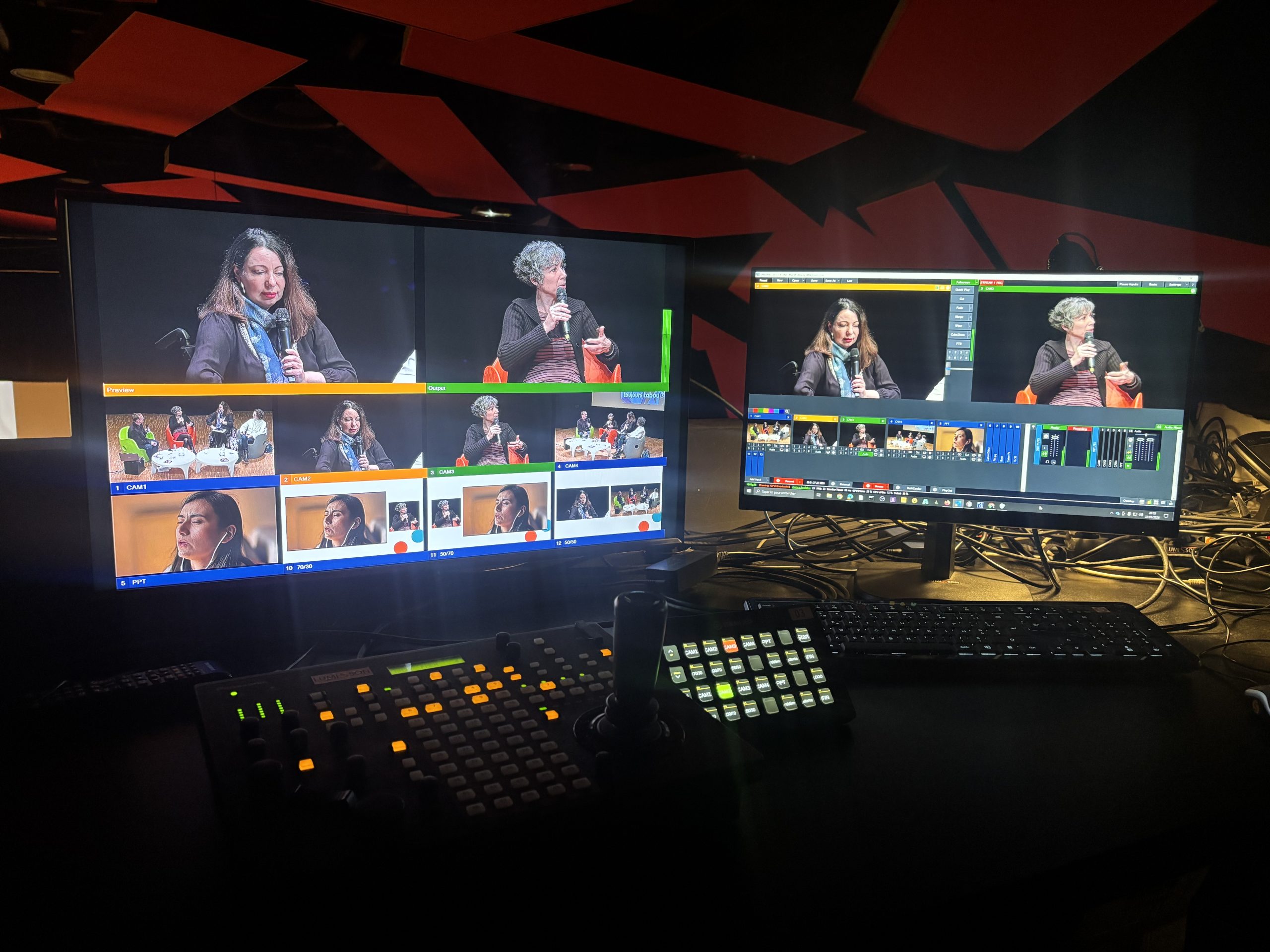 Pour ce projet, Lumisson a déployé un kit de captation clé en main, qui repose sur quatre caméras robotisées, pilotées depuis une régie streaming. Sur place, un technicien Lumisson assure la récupération du son, la gestion vidéo et la diffusion en direct.