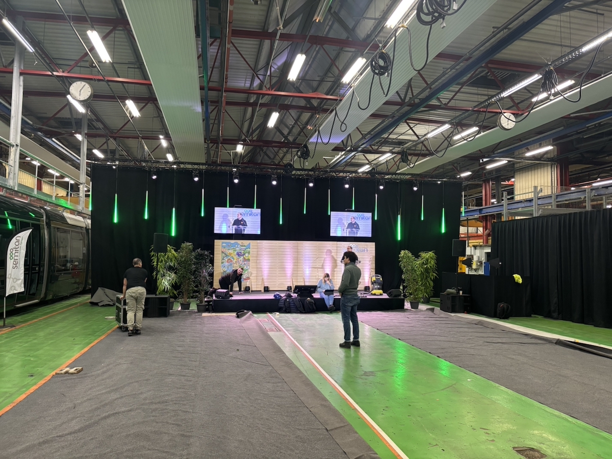 Dans un environnement très contraint en termes de sécurité et présentant de nombreux défis en terme de sonorisation, nous avons fait plusieurs propositions de scénographie répondant aux besoins exprimés par la Semitan.